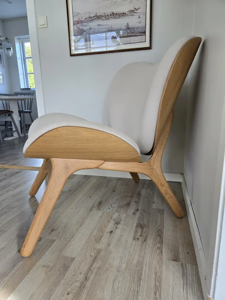 A Conversation Piece loungestólur, frá danska Umage, úr eik. Flottur og elegantur loungestólur, við góðum sitieginleikum. Bleiv keyptur í Juli 2025 til eina stovu, men vegna broytta innrætning passar hann ikki til.
